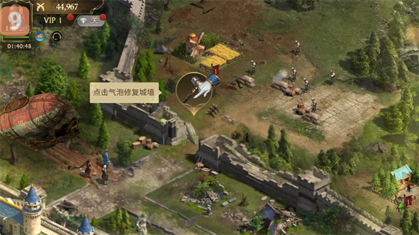 当有敌人来犯的时候,首先,确保你的城墙完好无损,点击气泡修复城墙,以防止敌人的突袭,保护你的资源和建筑安全,强化防御是生存的第一步。