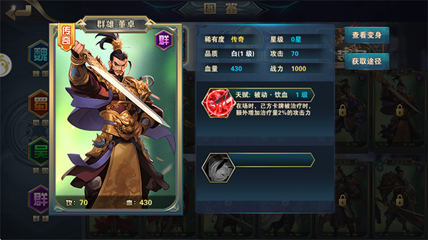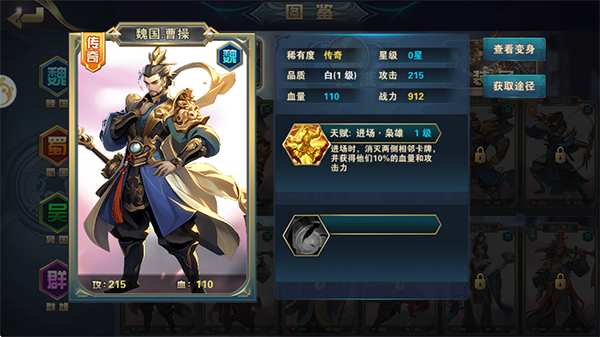 铜雀三国是一款以三国时代为背景的策略卡牌手游。玩家将穿越到三国时期,化身为一位主公,招募历史上的英雄,并在战场上施展策略。在这儿,你能够尽情构筑专属牌组,轰出极具无限可能的惊人伤害。铜雀三国拥有更为自由的流派构筑。上一秒或许还是挨打战士流,下一秒就可能转变为合体刷盾流,灵活多变的牌组,超越常人的意识,定能让你实现绝地大翻盘!