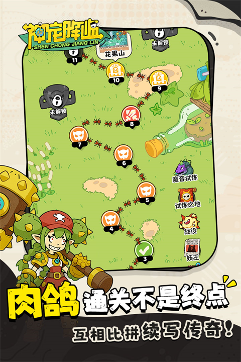 《神宠冒险》是一款结合策略战斗与角色收集的冒险手游。游戏中玩家可以通过收服各种神宠(包括元素精灵和上古神兽)来组建队伍,在随机生成的关卡中挑战强大的敌人。