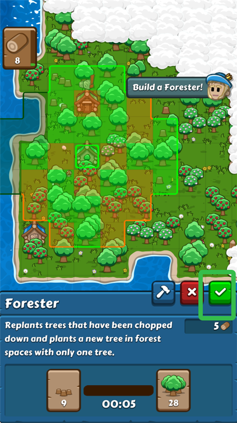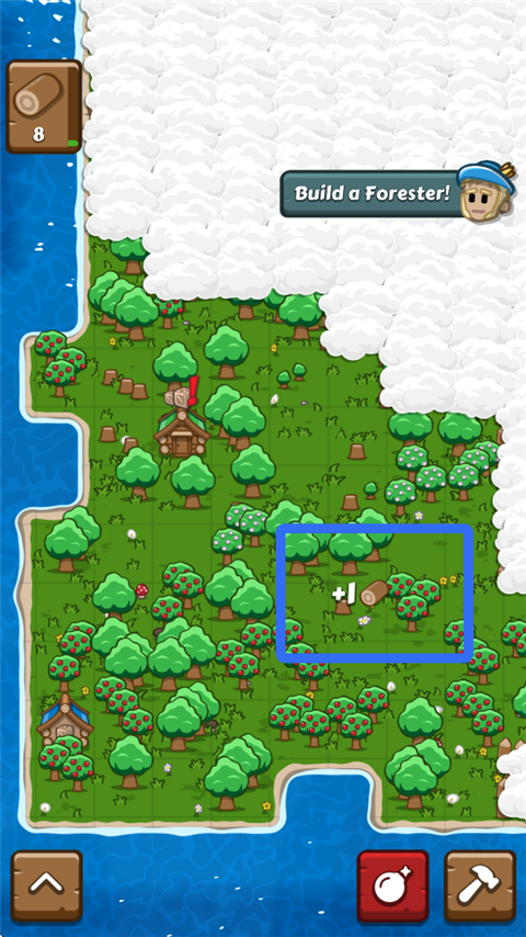 2、拥有足够木材后,点击锤子,可生产各种建筑。