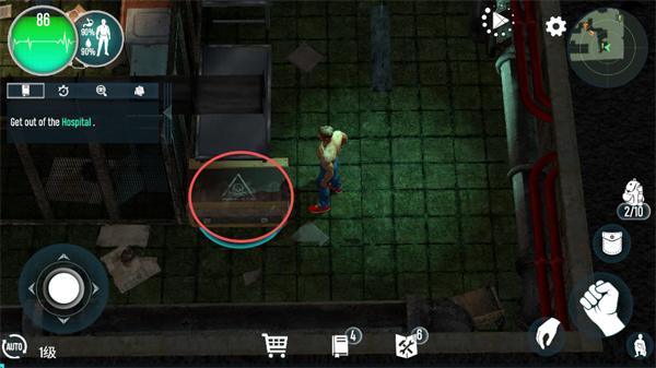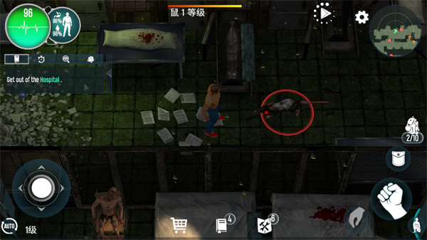4、继续前进后,点击屏幕右下方的“拳头”徒手攻击,可以很轻松战胜丧鼠。