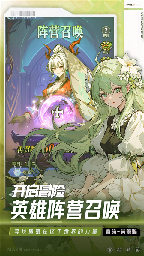 英雄迷宫冒险是一款童话风二次元卡牌手游。在这里,每一张卡牌都是开启童话冒险的邀请函,拿到它就能踏上新的探索路,可能是剧情、小怪、奖励都有可能,玩家需要招募美少女伙伴组队战斗,游戏的每个章节包含多个关卡和一个BOSS,通关后可选择技能BUFF增强战斗效果,击败BOSS获得奖励用于伙伴升级。此外,英雄迷宫冒险手游除了探索模式外,还提供多个副本以及工会、研究生、矿场等玩法!