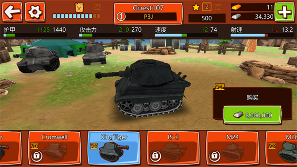 玩家可以收集数十种造型各异的坦克,涵盖复古军事风到未来科技感等多种风格。每辆坦克都拥有专属技能树,玩家可通过改装系统,从履带防滑钉到等离子炮管等200多个部件进行自由改装,打造个性化坦克。