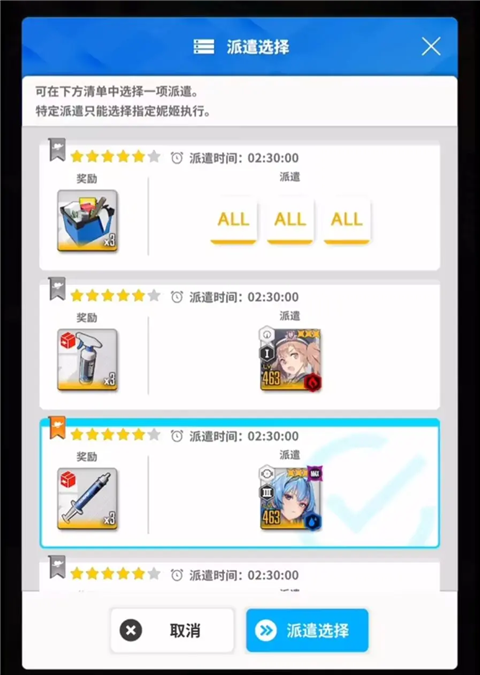 3、选择角色进行派遣即可。