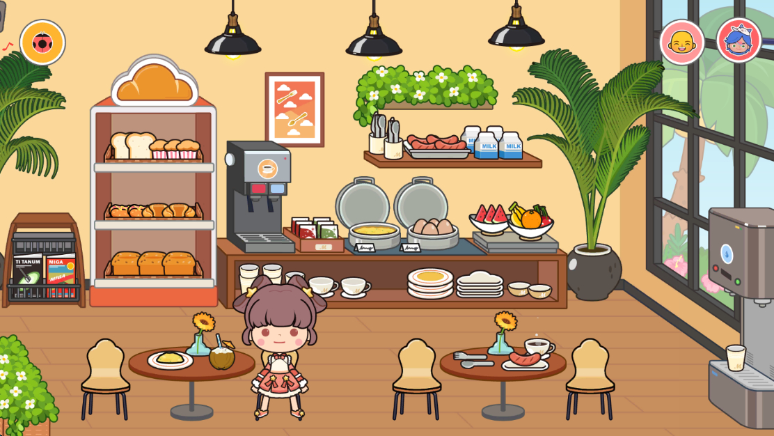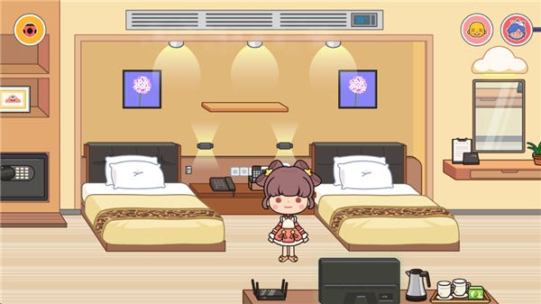 米加小镇沙漠酒店版是米加小镇世界最新版本,这一次是许多小伙伴万众期待的版本,米加世界迎来了全新场景沙漠快捷酒店。酒店内置3层可自由前往,第一层为早餐区域、第二层为双人床房、第三层则是一个大床房,在房间内拥有电视机、洗漱区、冲凉区、饮料、中央空调、休闲区,全部内容可进行互动。在早餐区域有着咖啡、面包、水果、可乐、牛奶等食物,点击食物添加角色可以进行喂食,让你体验豪华大酒店!