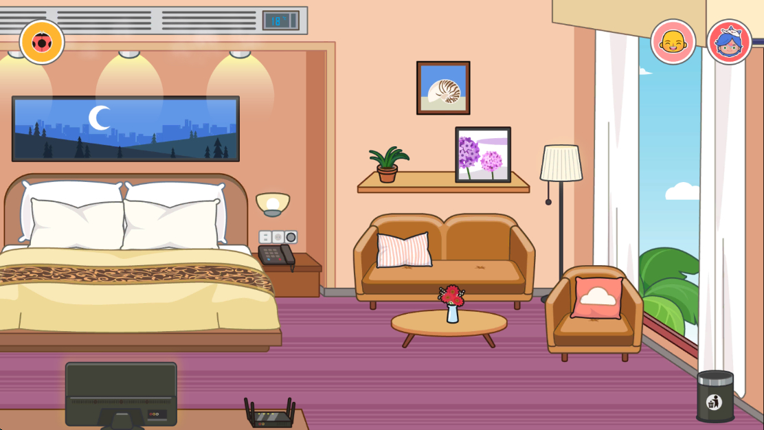 2、地点:这个虚拟世界有几十个地点,如商场、游乐园、医院、餐厅等,只有少数地点可以免费玩,大部分地点需要用真钱解锁。玩家可以与周围的所有物品进行互动,例如关灯、烹饪食物等。