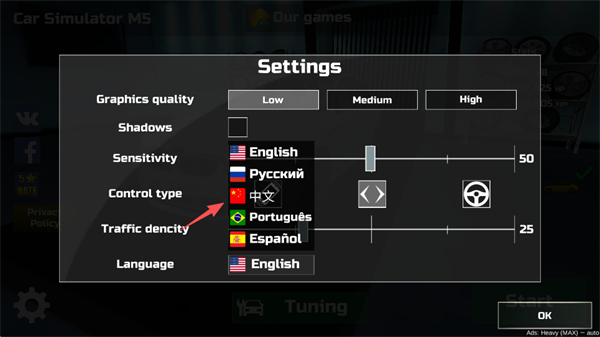 2、点击在屏幕下方的Language右侧的“English”更换成中文。