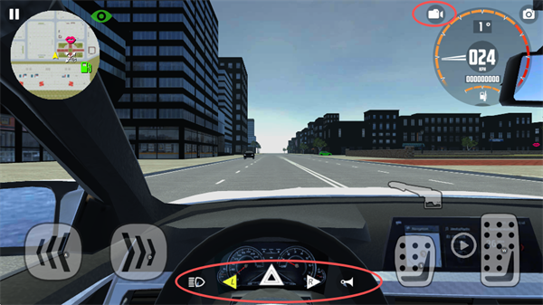 4、点屏幕右上角的“摄像头”,更换视角,屏幕下方的按键可操控车辆装置部分
