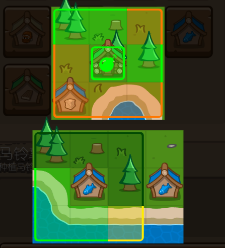 3、典范因为要的建筑太多了,所以不能沿用之前那一套,得重新摆。把建筑集中放中间,然后能覆盖到除了四个角以外的位置,能放的房子也挺多的。