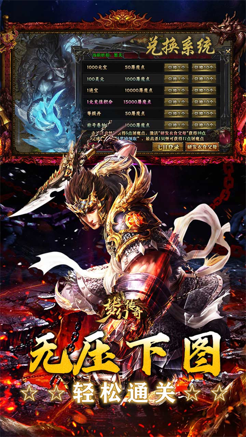 1、上线送狂暴之力、区服冠名、绝世仙官、高级特权、全屏切割!