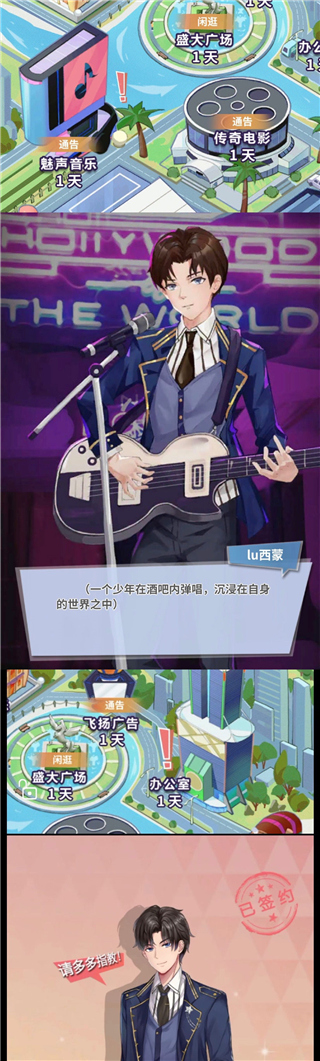 6、星优:酒吧有剧情盛大广场也有剧情最后在旭阳电视签约(我按剧情签约的时间是01年5月末-6月初)