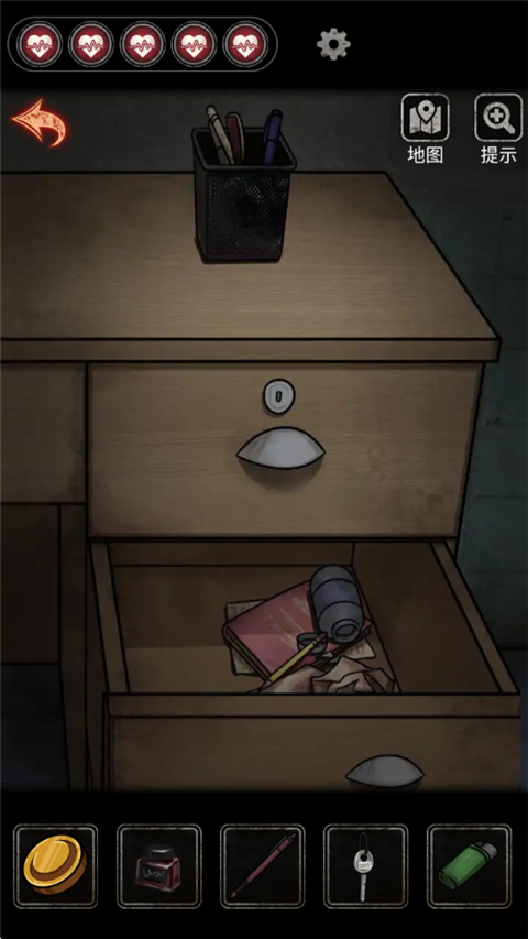 6、再点击抽屉,多点几下就可以拿出里边的打火机和小零件。