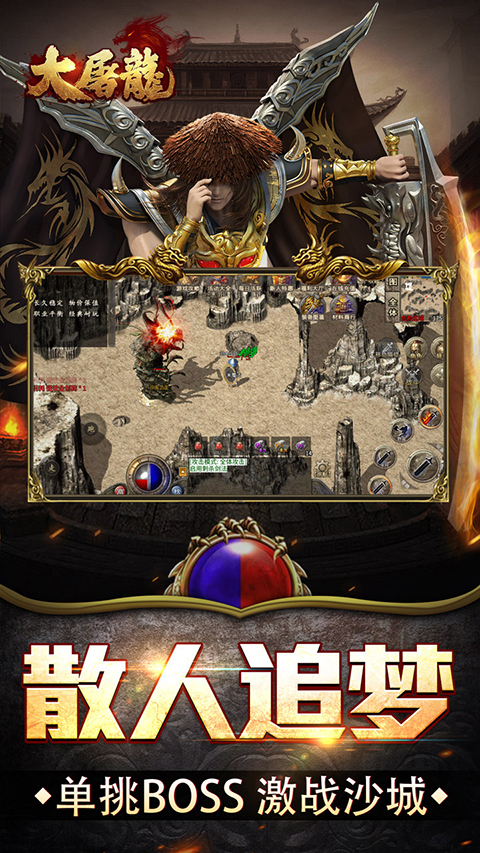 《大屠龙》是一款1.80复古微变多职业版本的传奇手游,结合了经典玩法和创新设计,让玩家体验到丰富有趣的乐趣。游戏特色包括单职业也能通过技能和装备获得不同爽感,以及自由PK、激情攻沙等经典元素。新手上线还有丰富的奖励和活动,比如每日登录、除魔、在线任务等等,轻松获取资源和武器装备。游戏还延续了经典的登录界面和核心玩法,同时加入了3D画面和全新系统,让玩家感受到复古与创新的结合。