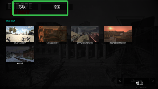 1、进入欧洲前线开始游戏后,选择【苏联】或【德国】战役进入。