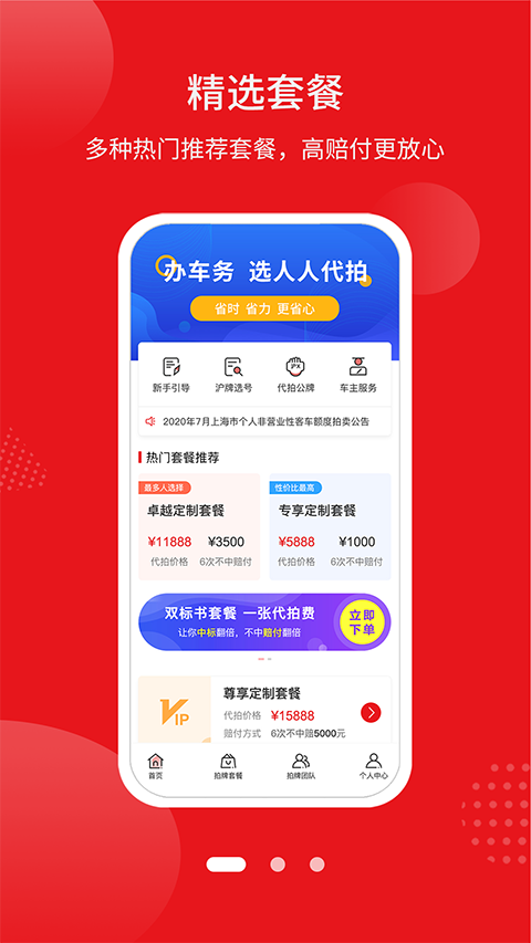 人人代拍App是一款专业沪牌代拍平台,为用户提供代拍私牌、代拍公牌、沪牌选号等一站式服务,线上线下结合为车主提供更便捷、全面的服务。软件采用大数据建模技术,全自动AI识别和智能出价改价等黑科技,能根据拍牌瞬息万变的实时情况做出正确的策略,快速帮助用户拍到沪牌。人人代拍官方版为用户提供免费线上选号功能金牌代拍团队24小时实时接单,量身打造专属自选号码。软件实行先行赔付、拍中付款规则,拍中沪牌再付款,否则平台自付赔付金,严格保障用户权益。拍沪牌就上人人代拍大品牌,中标快!