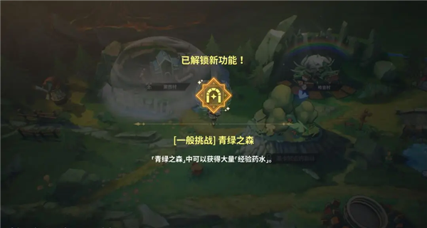 推到第1章第7节时,就会解锁「一般挑战·青绿之森」副本,在这里可以获得大量的「经验药水」。