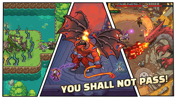 《福蒂亚斯传奇》是一款很有意思的RPG放置类冒险游戏。游戏背景设定在一个被黑暗势力笼罩的大陆,玩家需要带领一支英雄小队去对抗这些邪恶力量,探索不同的世界并揭开隐藏的秘密。游戏的操作很简单,通过滑动屏幕控制队长移动,其他队员会自动攻击敌人。关卡里有各种各样的怪物,比如史莱姆、哥布林等,每个关卡最后还有一个强大的BOSS需要挑战,有些BOSS还能变形,这就要求玩家灵活调整队伍的搭配。