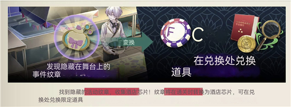2、找到隐藏的活动纹章,收集酒店芯片。纹章将在通关时转换为酒店芯片,可在兑换处兑换限定道具。