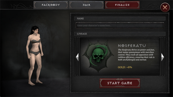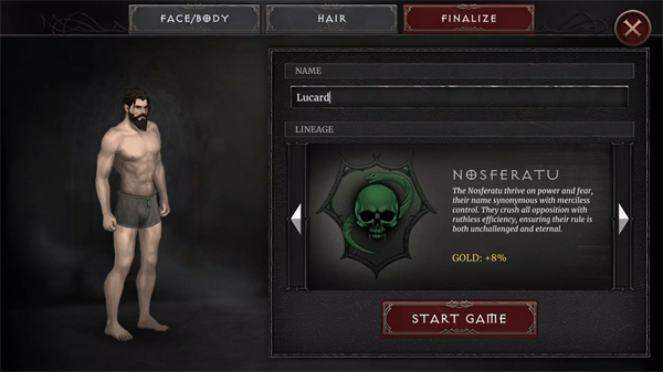 1、进入吸血鬼的陨落2游戏,玩家为角色塑形,调整外观。