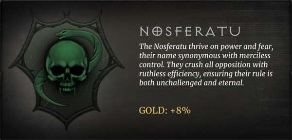 诺斯费拉图人靠权力而繁荣,并害怕他们的名字等同于无情的控制。他们以无情的效率粉碎所有反对派,确保他们的统治不受挑战且永恒。