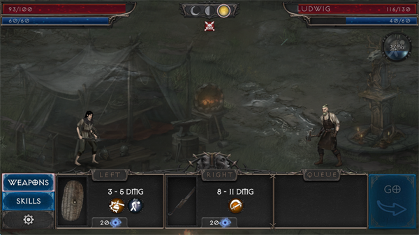 6、随后的攻击方式有两种,一种是普通攻击,根据左右手的武器不同,攻击方式不同,刀目前就只有一个砍击,盾则有两种,一种降低对方防御,另一种概率眩晕,并且都可造成少量伤害;另一种攻击方式为技能,暂时还不会学到,基础的新手装备足够驰骋新手村了。