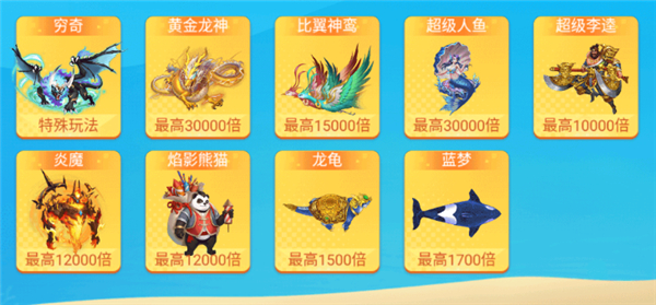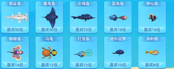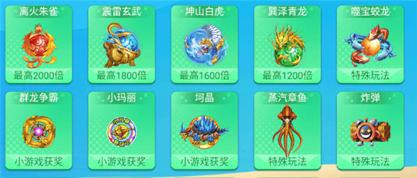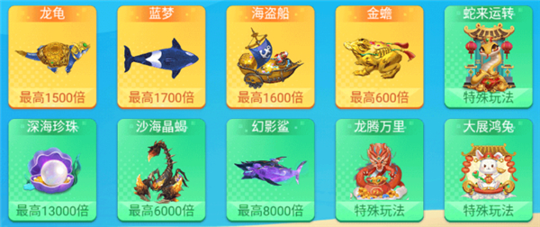 特殊鱼:拥有特殊玩法的鱼种,击杀后根据特殊玩法奖励金币。
