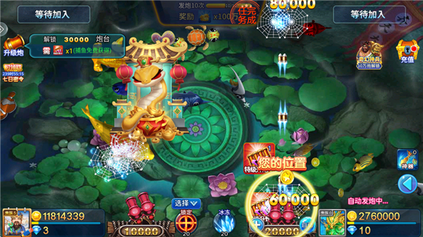 劲爽炫酷炮台和华丽绚烂翅膀,让您在海底的捕鱼世界也能炫出个性,惊艳四座!