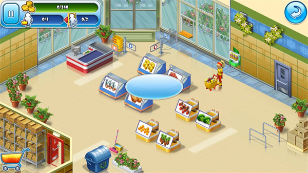 4、收银后立马整理推车。收银台和推车寄存处是离得很近的,而让它们更加密不可分的原因是只有结过账的顾客才能够有空出的购物车来进行整理,所以玩家每次在结账过后一定要记得整理一下购物车,以防重复走路线浪费时间。