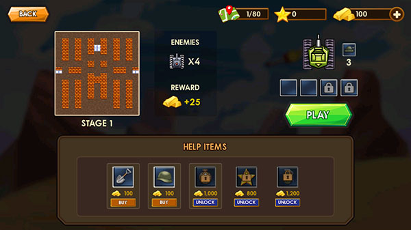 2、丰富的关卡选择,不同的坦克选择使用,完成你的战斗。