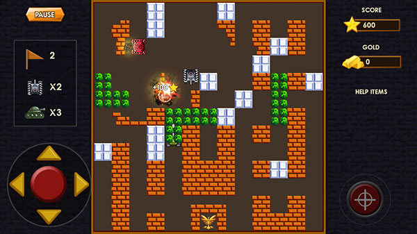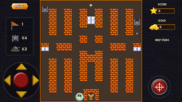 坦克1990怀旧版官方版也叫作经典版,顾名思义,还是熟悉的配方、熟悉的玩法、熟悉的画面,其采用复古的像素画风,以坦克战斗及保卫金鹰基地为主题,玩家在这里控制自己的坦克进行移动和射击,由于金鹰基地平时被红砖围住,非常脆弱,敌我双方的砲弹皆可打爆,所以我们的目的是保护好自己的领地,消灭对方的坦克,并通过获取一些道具使坦克和基地得到强化,不同武器及不同级别的坦克保护基地的实力是不一样的,玩法非常丰富,带领玩家重温儿时经典,重拾童年美好!