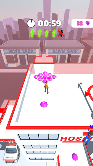 医院逃生者(Hospital Escaper)是一款非常刺激的休闲跑酷类手游,该游戏将对立的两个阵营分为医生和患者,而玩家将在游戏中扮演的是负责逃亡的患者一方。每局游戏的开始,玩家将和其他AI一起,在封闭的场景中不断地闪转腾挪,目的就是为了避免被负责追捕的医生抓住。你可以善加利用场景中的地形与医生斗智斗勇,比如围绕着一些大型车辆转圈;或者攀爬高楼,再从顶层一跃而下,以快速摆脱医生;又或者利用弹簧踏板,穿梭于各个楼顶之间。总之,可采用的方法有很多,想成为合格的医院逃生者就要懂得随机应变。