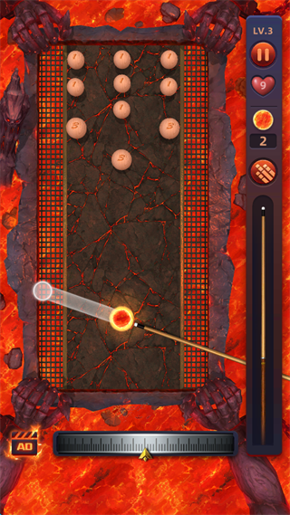1、根据关卡要求,在固定击球次数内完成每个关卡需要进的球数,即可获得胜利;