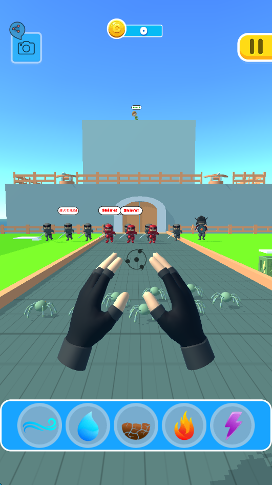 忍术之手3D(Ninja Magic 3D)是一款以忍者为题材的动作闯关休闲游戏。游戏采用3D卡通风格,画面色彩明亮,音效清爽,可让玩家不由得轻松愉快。游戏中,玩家需要融合风、火、雷等元素,释放召唤蜘蛛、火球和定身等技能,击败邪恶的忍者。游戏敌方忍者的种类繁多,如普通忍者、重装忍者、飞行忍者等,玩家在消灭敌人的过程中,还不得误伤平民,否则直接结束游戏。忍术之手3D游戏还有多种手套可供选择,甚至拥有无尽手套,强大的手套可以更快的施展技能,从而轻易击败敌人。