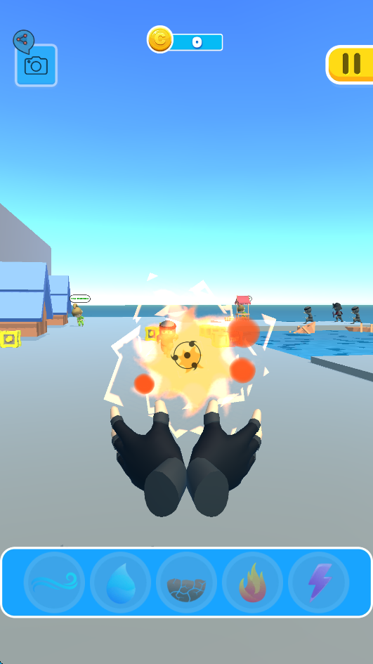 不过,玩的时候得小心别伤到无辜的平民,不然游戏就会直接结束,这点挺考验技术的。游戏里还有好多不同的手套可以选,甚至有个“无尽手套”,戴上之后技能释放得更快,打起架来特别爽。对了,游戏里还能把不同元素组合起来用,比如土加水能让敌人定身,火加电能召唤出地裂攻击,这些技能组合玩起来特别有意思。