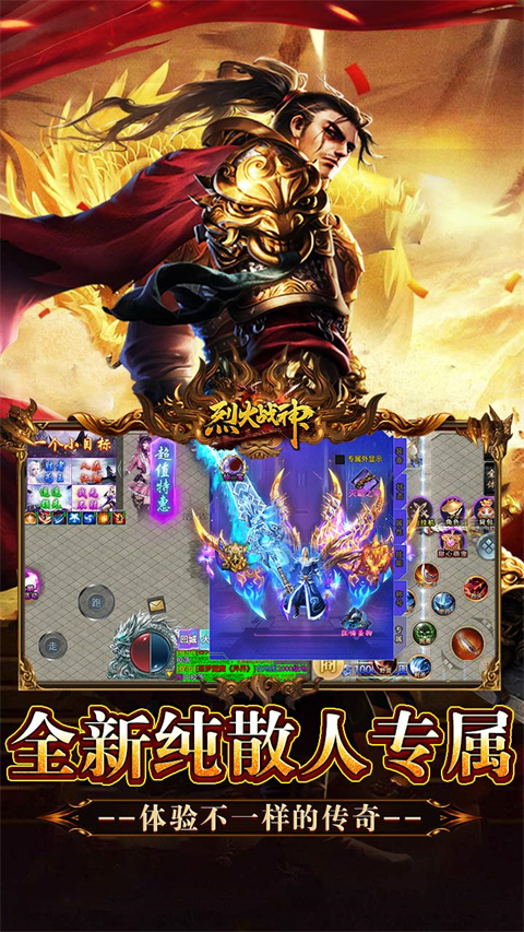 烈火战神是一款继承了传奇经典战法道三角职业传奇手游,游戏里自带各种散人福利,登录千万元宝拿到手软,还有高阶道具超强装备炫酷外观和称号和各种逆天属性buff,开局直接称霸全服,福利拉满良心制作!