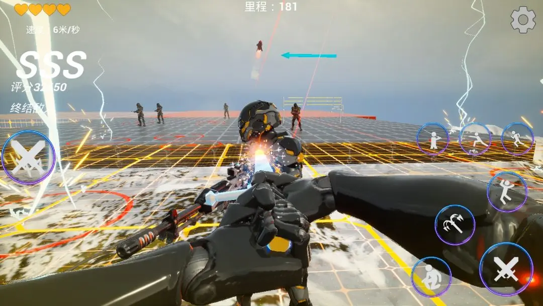 1、游戏拥有炫酷的武器,屏幕左侧控制角色的奔跑移动,屏幕右侧控制武器检视,攻击,跳跃,滑铲,钩索等等操作。