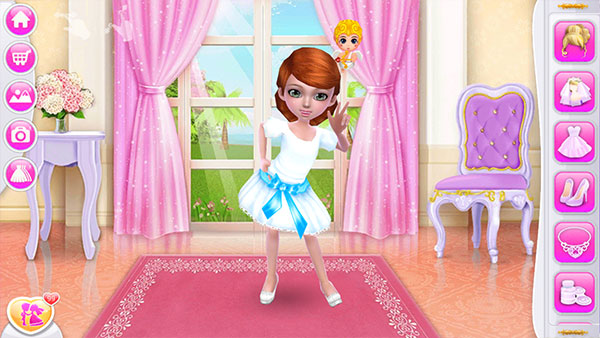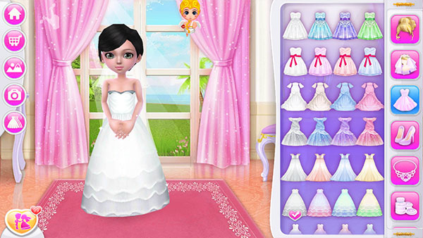 1、在本站下载安装好可可婚礼游戏,打开进入,左侧分别是主页、购物车、背景图、真实拍摄以及套装推荐。