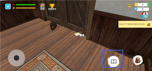 1、进入格斗学校模拟器手游,来到门前点击右下角书本图标阅读门下的便条。