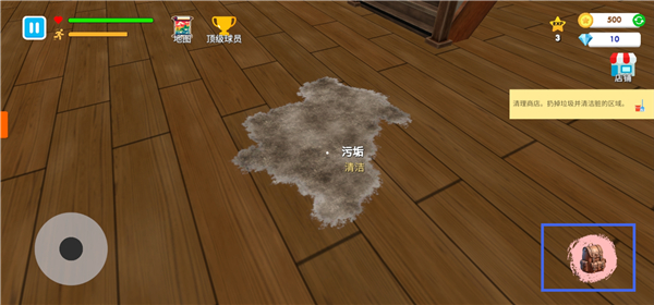10、来到污垢处,点击右下角背包。