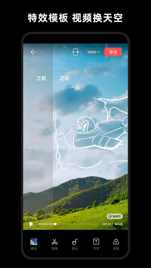 『多场景覆盖』热门爆款视频、旅行、城市风光、流行VLOG、亲子萌娃、可爱宠物、卡点视频轻松剪,手机剪辑大片的神器,剪辑新手也能轻松创作精致大片!