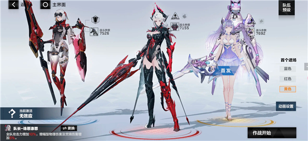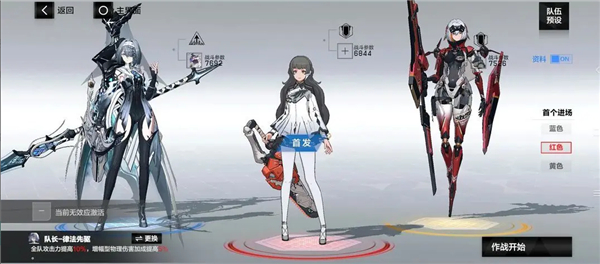 4、前期物理队(凛冽单c):亚里莎·回音(蓝位,队长),七实·风暴(红位,首发),罗塞塔·凛冽(黄位)