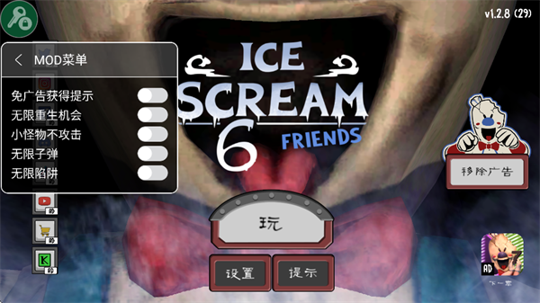 本站分享的是恐怖冰淇淋6内置MOD菜单中文版,该版本已内置作弊菜单,支持免广告获取提示、无限子弹等功能,并完整适配简体中文,便于玩家深入体验。