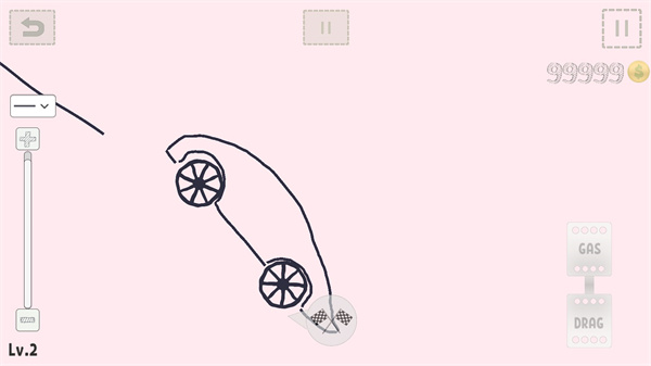 4、如果终点在你正下方的话可以利用左上角的撤销按钮,画一条线,等车稳住以后点撤销,在线消失的同时立马在下方绘制一条马路,依次循环往下掉,即可到达终点。