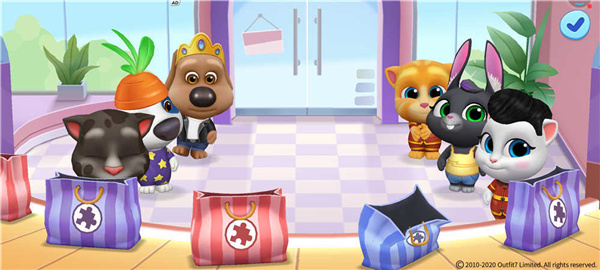 游戏里有六个可爱的宠物:幽默的汤姆猫、优雅的安吉拉、憨厚的汉克狗、搞怪的金杰猫、易怒的狗狗本,还有新加入的爱唱歌的贝卡兔。他们的性格各异,互动起来特别有趣。