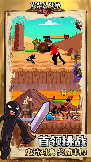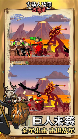 《火柴人战争战略版》是一款以经典卡通的火柴人为主题设定的卡牌类放置塔防小游戏。该游戏不但采用了简约独特清晰的画风设计,提供了数十种的卡通,以及多种玩法模式可供大家自由选择和挑战。而且游戏整体也还以卡牌、防守为主玩法核心,操作简单好上手,玩家最主要的目的便是就是建立最大的“火柴人帝国”,通过在游戏中扮演一个火柴人部落的领导者,不仅需要不断的购买各种卡牌,召唤各种火柴人去来进行培养升级,同时还需利用手中的卡牌来排兵布阵,搭建最强阵容,保护你的子民和村庄免遭敌人的袭击,让后世的火柴人永远都在称赞你。