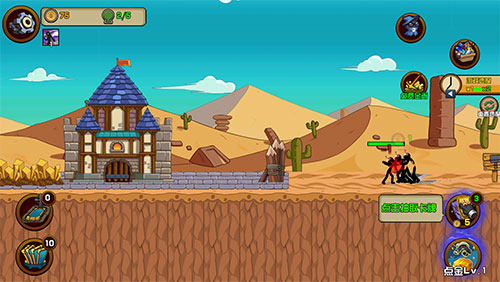 4、军事卡:军事卡顾名思义用于保卫家园,提升火柴人军事实力,军事卡可以反复使用,但是每次征召都要消耗金币和人口,而且军事卡必须安置在城墙处,随着游戏波数增加,你必须确保你的军事单位能够阻挡住潮水般的袭击。