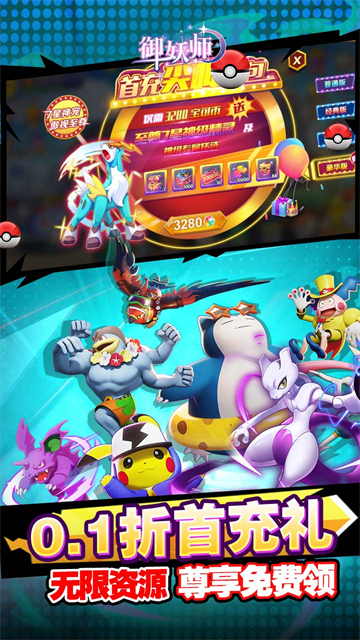 御妖师(0.1折送真充宝可币)是一款以宝可梦为主题的高福利幻想冒险手游,融合精灵收集、策略养成与热血战斗等多种玩法。游戏中拥有丰富多样的宝可梦精灵组合与华丽技能特效,玩家可体验Mega进化、精灵突破等多元成长系统,在全新地图中邂逅伙伴、展开冒险。此外,游戏每日登录即可领取真充宝可币,享受超值福利与自由养成的乐趣,打造属于自己的最强御妖团队。