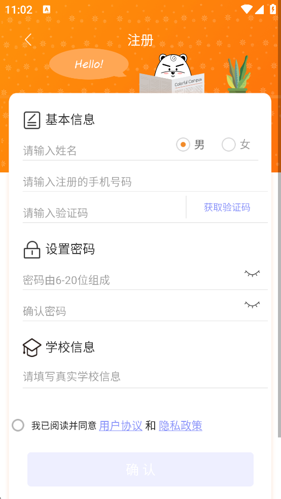 2、输入自己的基本信息后,点击【确认】