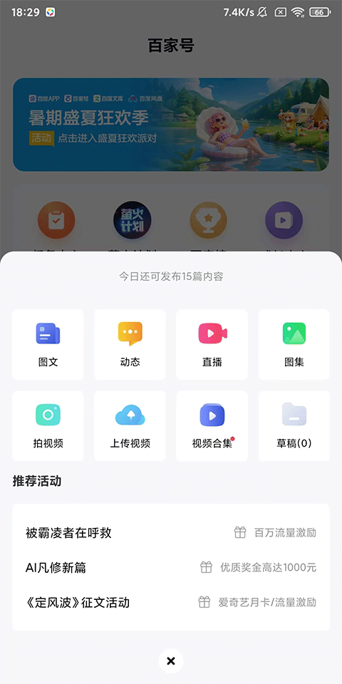 4、发布作品:创作工具强大使捷,多种发文任你选择;