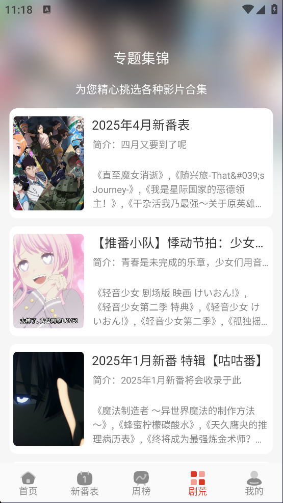 软件每天还会更新最新番剧,绝对不会让我剧荒。最近它还推出了“剧荒专题”,里面有很多推荐和榜单,帮助我在茫茫多的动漫中找到适合自己的那一款。作为一个刚开始入门的新手,真的觉得这个功能特别贴心。
